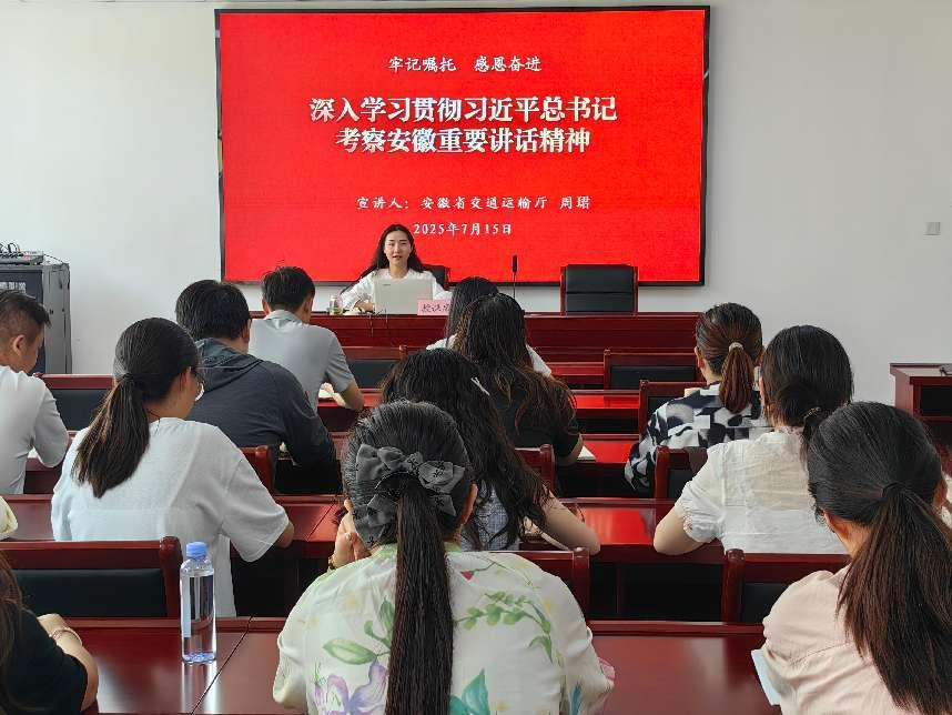 报告会上,周珺紧紧围绕习近平总书记考察安徽重要讲话精神和中央八项规定精神,结合自身学习体会与工作实践,用通俗易懂的语言、丰富详实的案例进行了深入阐释。周珺指出,习近平总书记考察安徽重要讲话为地方发展指明方向,从经济转型到科技创新,为各项工作注入强大动力。在解读中央八项规定精神时,周珺着重强调其对党风廉政建设和良好政治生态营造的重要意义,通过剖析违规典型案例,警醒大家严守纪律红线。整个宣讲既有理论高度,又紧密联系实际,让现场听众深受启发,对相关精神有了更深刻、全面的理解。宣讲活动得到了省直工委和省交通运输厅的高度肯定。