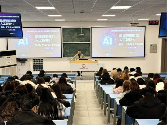 12月17日,图联科技有限公司工程师张春应邀为米兰2024级、2025级大数据专业学生开展了“数据要素赋能人工智能+”专题讲座,学院副书记、副院长(主持)张峰、大数据专业负责人出席参加。讲座围绕大数据专业前景、数据产业价值链及人工智能时代下的职业发展路径展开深入分享。