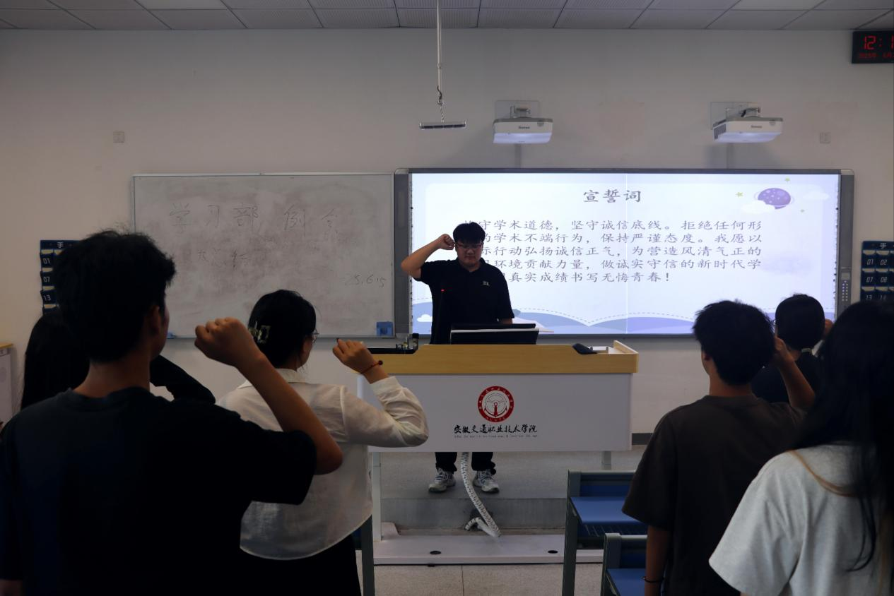 为端正考风考纪,筑牢诚信根基,营造风清气正的考试环境,2025年6月24日人工智能学院团总支组织开展“诚信考试,以信立人”主题教育。人工智能学院学生代表参与本次活动。