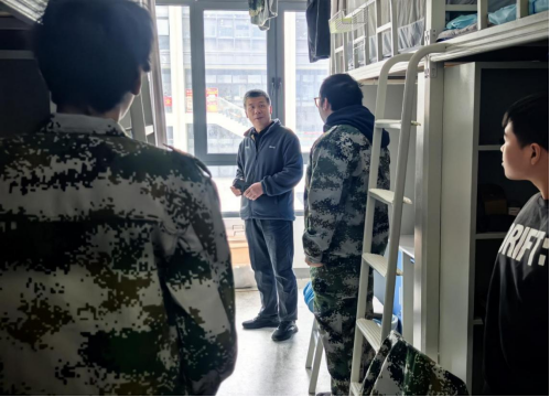 为切实保障新生军训期间住宿安全,及时了解新生生活需求与适应情况,2025 年 10 月 20 日中午,校党委委员、组织人事处处长龚桢深入人工智能学院新生宿舍,开展安全检查与走访慰问,人工智能学院党总支书记胡冰、党总支副书记、副院长(主持工作)张峰、党总支副书记孙巍巍、部分辅导员陪同,用 “零距离” 关怀为军训中的新生注入温暖力量。