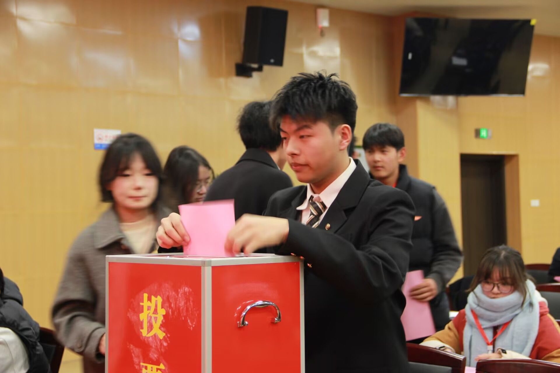 正式会议中,2024届学生会主席团成员鲁文祥代表2024届学生会向大会作工作报告《凝心聚力共奋进 踔厉奋发向未来》,报告客观地总结了上一年度我系学生会工作所取得的成绩和不足。本着公平、公正、公开的原则,大会以无记名投票的形式,民主选举产生了基础系2025届学生会主席团。