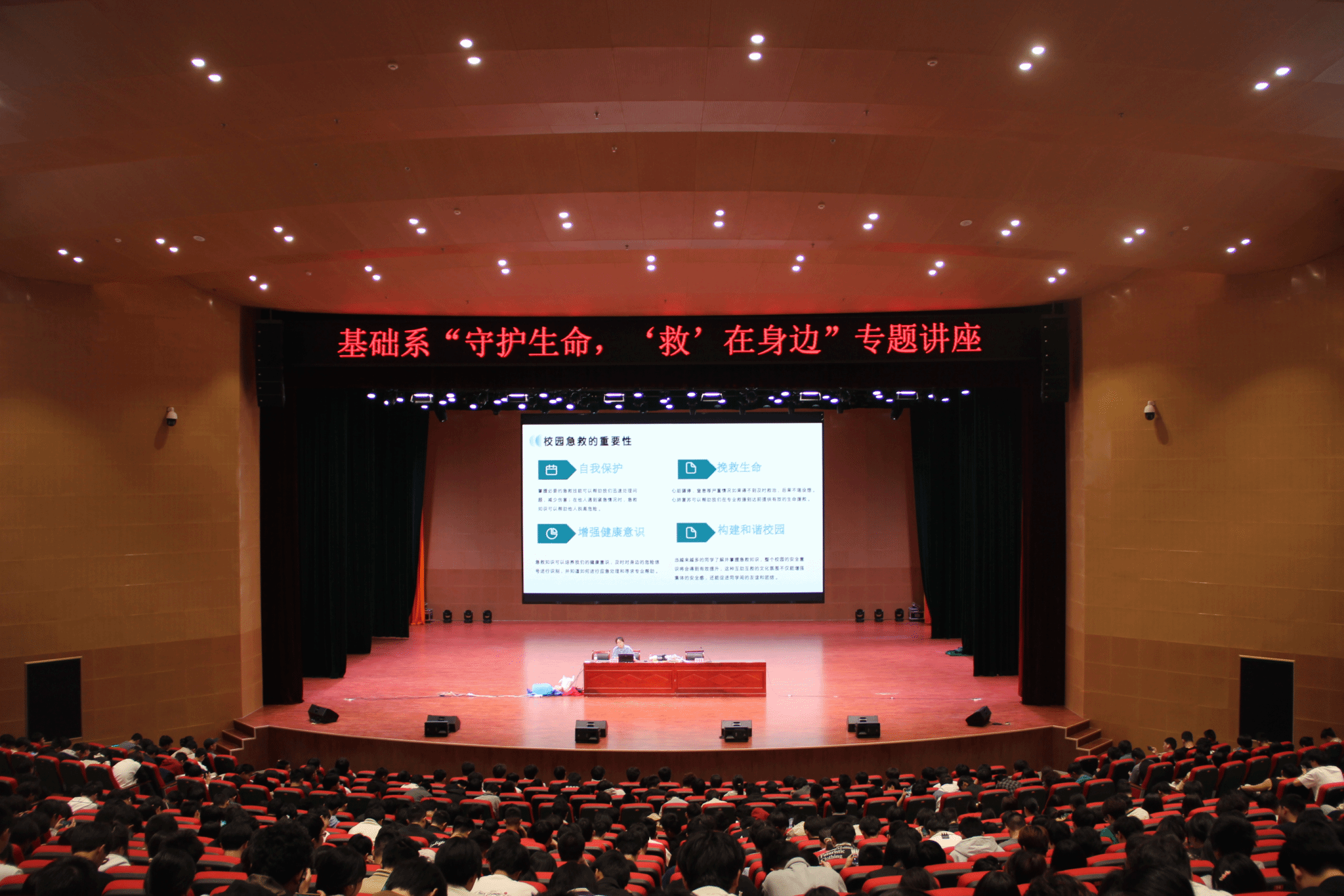 为提升学生安全意识,筑牢校园安全防线4月15日晚,基础系在经世大礼堂开展“守护生命,‘救’在身边”校园安全教育讲座,邀请安徽文达信息工程学院范猜猜老师给同学们上了一堂深刻而生动的校园安全教育急救技能课。本次讲座由系党总支副书记孙巍巍老师主持,全系学生参加了讲座。