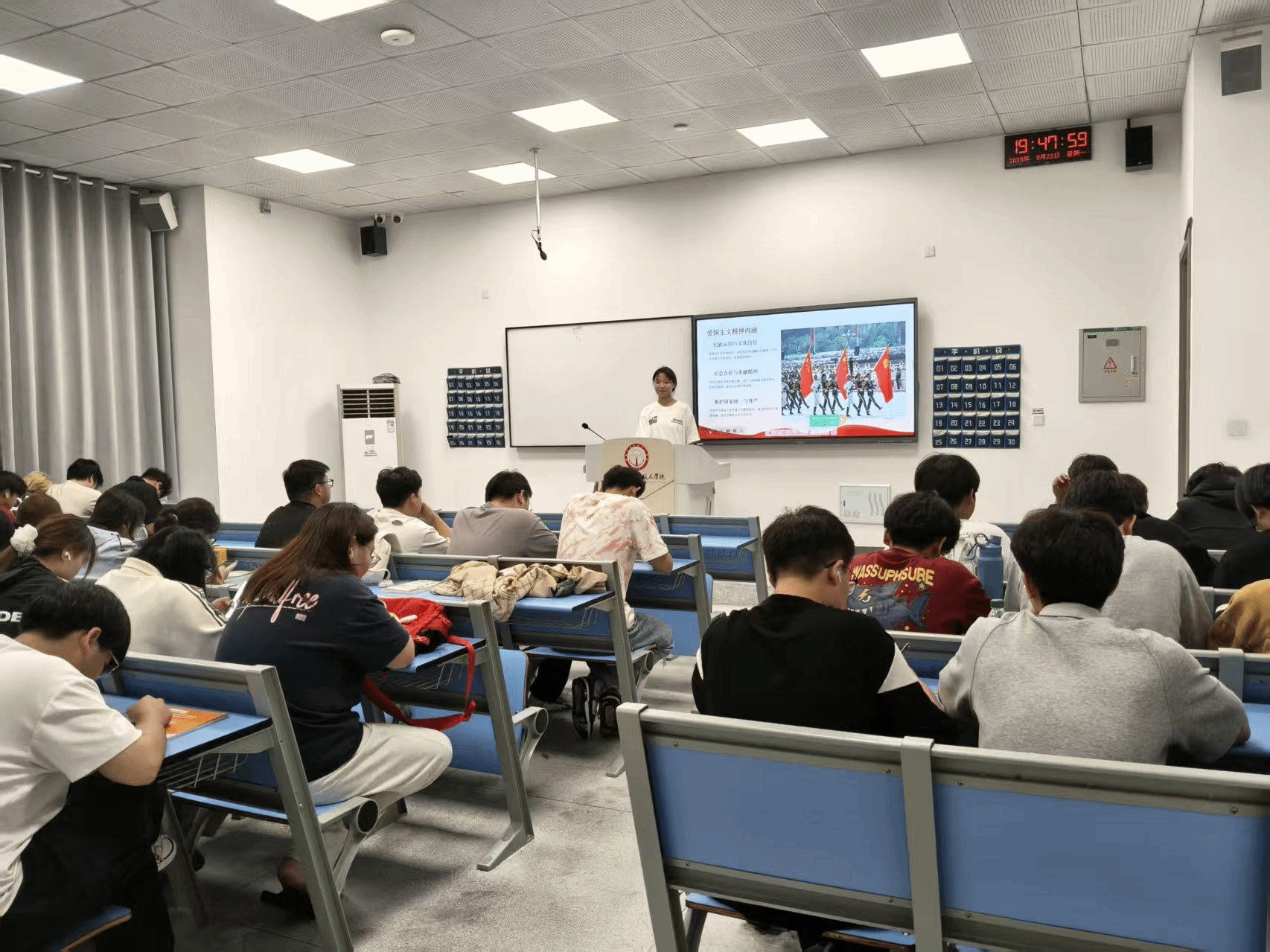 本次活动,聚焦反法西斯历史脉络:主题学习带领同学们回望历史,牢固爱国根基;主题观影,纪录片的珍贵影像缓缓流淌,让学子直观感受中华民族 “宁为玉碎,不为瓦全” 的民族气节;AI海报设计大赛,涌现出许多创意独特的优秀作品,让学子们用AI绘爱国,体悟科技创新赋能爱国的时代力量。