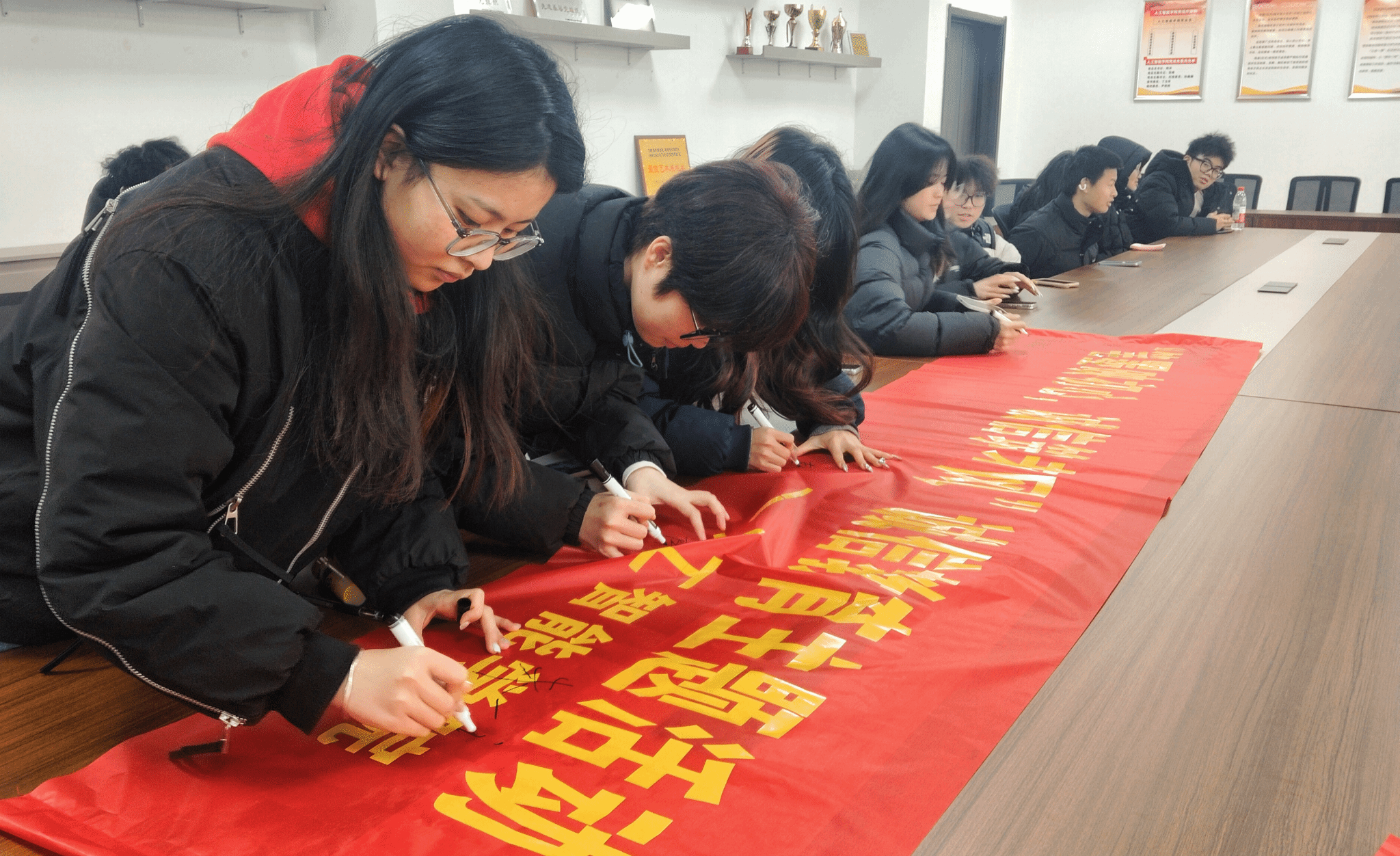 学院学生会充分发挥组织引领作用,开展诚信考试签名活动。课间时分,同学们纷纷在印有“笔墨映初心 诚信筑考风”字样的横幅上签名,表达对诚信考试的支持与践行决心,活动现场气氛热烈。