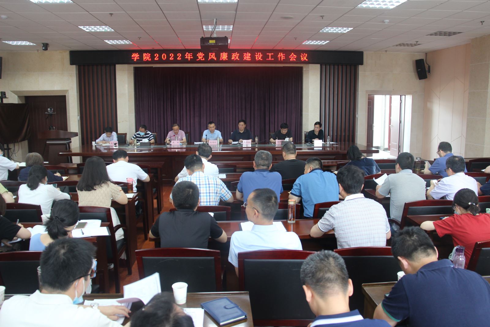 6月2日上午,学院召开2022年党风廉政建设工作会议,进一步学习贯彻习近平总书记在十九届中央纪委六次全会上发表的重要讲话精神和十九届中央纪委六次全会、省纪委十一届二次全会、省厅党风廉政建设工作会议精神,传达省纪委省纪委监委公开通报5起违反中央八项规定精神典型问题,回顾总结2021年学院党风廉政建设和反腐败工作,部署2022年重点任务。院党委书记孙顺利出席会议讲话,院党委副书记、院长张国栋主持会议。