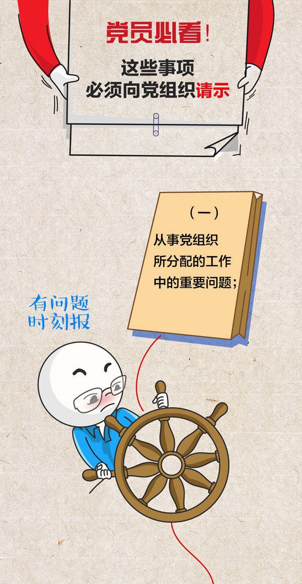 请示报告制度是我们党的一项重要政治纪律、组织纪律、工作纪律,是执行民主集中制的有效工作机制。近日,中共中央印发了《中国共产党重大事项请示报告条例》。根据规定,党员应当向党组织请示、报告下列事项: