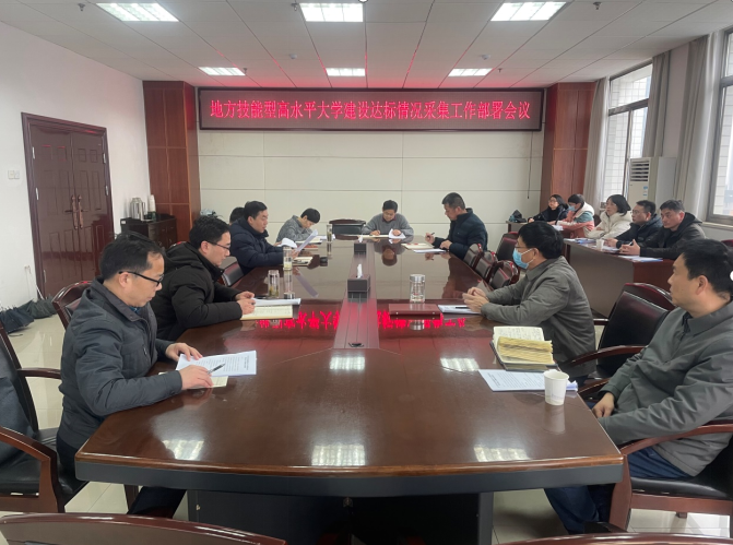 2月23日下午,学院在信息楼七楼会议室召开地方技能型高水平大学建设达标情况采集工作部署会议。院党委副书记、院长孙晓雷,副院长王丰胜,各系部主要负责人参加会议。会议由教务处处长汤峰主持。
