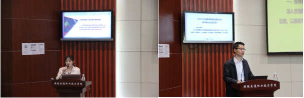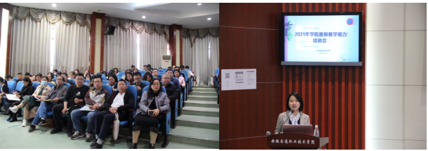 为持续推进学院教师教育教学水平和教学信息化能力提升,提高教师教学能力大赛参赛能力,4月28日,学院邀请2020年教学能力大赛国赛获奖选手安徽工商职业技术学院谷小城和芜湖职业技术学院徐琬婷两位专家来院开展讲座,教务处处长、各系主任以及学院专兼课教师共200余人参加,培训会由教务处副处长兰清群主持。