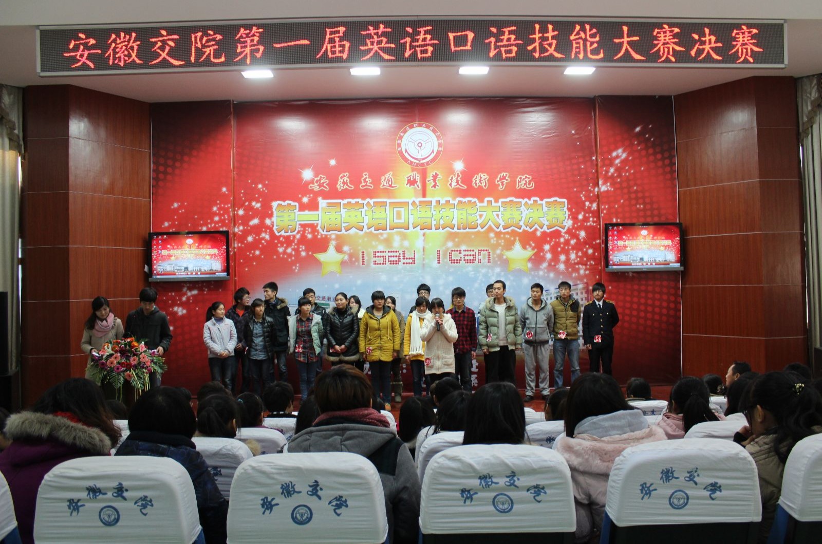 为深入贯彻教育部《高职高专教育英语课程教学基本要求》,深化高职高专英语课程教学改革,有效提高高职高专学生英语口语表达能力,拒绝“哑巴英语”,增强英语技能的实用性和日后就业中的竞争力,营造良好的外语学习氛围,同时为参加省级口语技能大赛选拔和储备人才,学院与2012年12月举行了首届英语口语技能大赛。