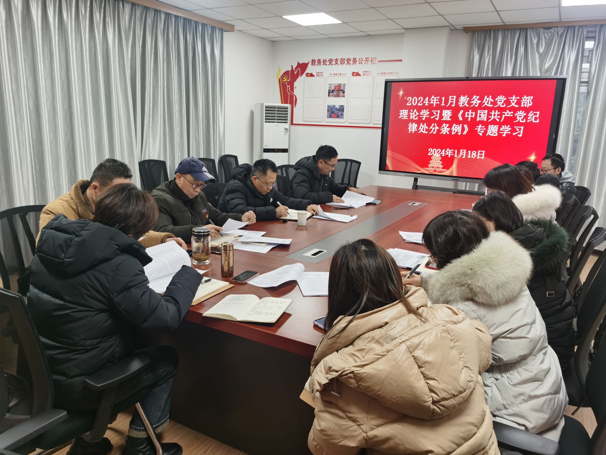 1月18日,教务处党支部召开全体党员理论学习暨《中国共产党纪律处分条例》专题学习及研讨会,支部书记汤峰主持会议,全体党员参加。