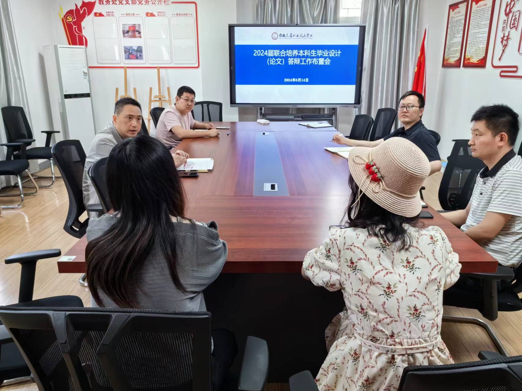 2024年5月14日下午,教务处召开联合培养本科毕业答辩协调会。四个专业联合培养联系人参会。会议围绕2024届联合培养本科生毕业相关工作展开。教务处副处长董庆主持会议。