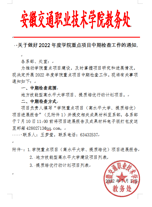 关于做好2022年度学院重点项目中期检查工作的通知