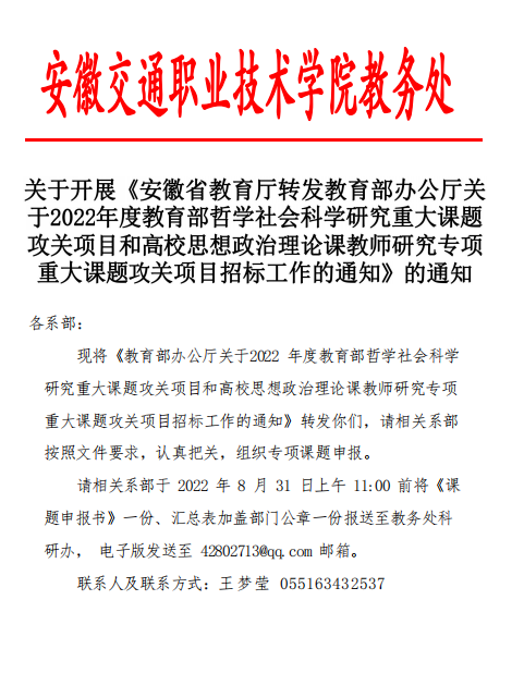 关于开展《2022年度教育部哲学社会科学研究重大课题攻关项目和高校思想政治理论课教师研究专项重大课题攻关项目招标工作》的通知