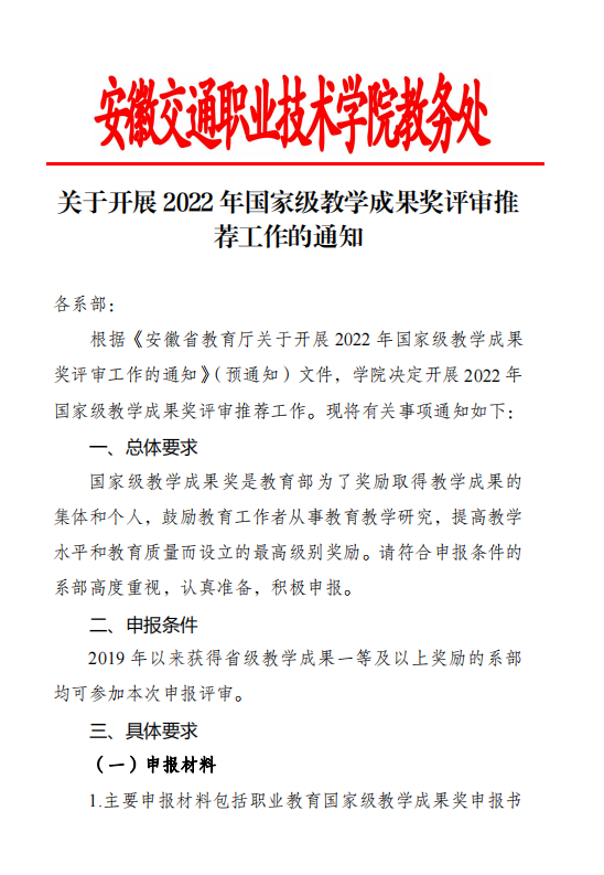 关于开展 2022 年国家级教学成果奖评审推荐工作的通知