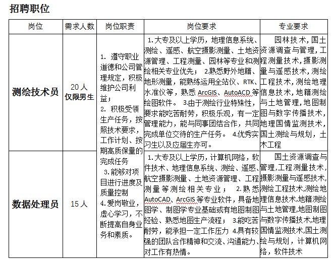 业务介绍:工程测量1、各类平面、水准控制测量2、土方测量3、断面测量4、工程项目、土地整理项目、城乡土地利用挂钩规划项目等地形测量5、竣工测量6、管线测量7、道路、河道勘测定界;基础测绘1、各类控制测量2、1:1万基础地形测绘3、1:1000、1:2000基础地形调绘;地图编制1、土地利用现状图编制2、专题图编制;摄影测量与遥感1、航空摄影测量2、遥感影像处理;不动产测绘1、农村土地承包经营权确权登记颁证2、农村房屋调查3、房产测绘;土地调查及建库1、土地利用现状调查及建库2、城镇地籍调查及建库3、集体建设用地调查及建库4、村庄地籍调查及建库5、其它类似土地调查业务。