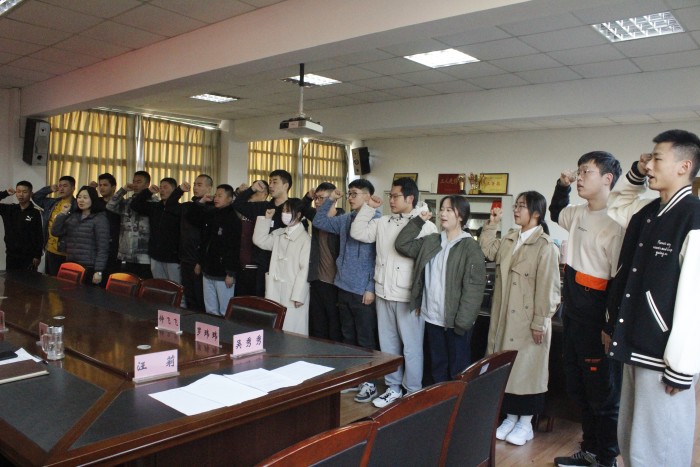 随后,由学生党支部书记赵婧领誓,全体党员面向党旗、举起右拳,进行了庄严的宣誓。黄智勇宣布本次大会严格遵循程序,结果真实有效。