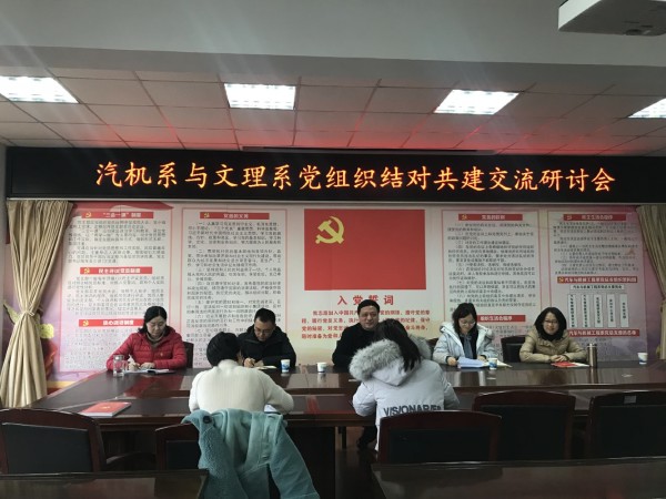 会上,双方共同学习了《汽机系下辖党支部与文理系下辖党支部结对共建活动实施方案》,各支部书记分别介绍了本支部“三会一课”落实、党建活动特色以及业务工作开展情况,交流党建工作经验。