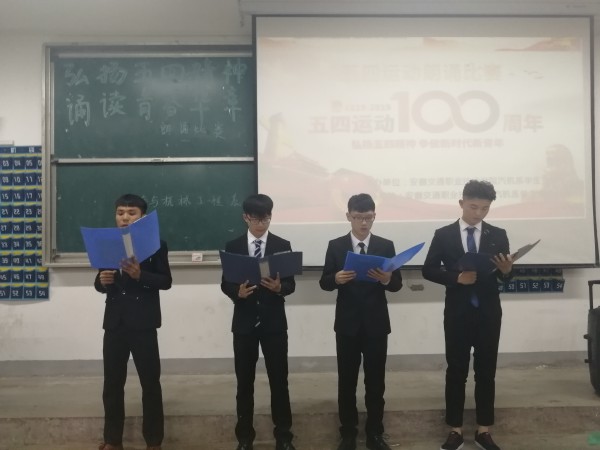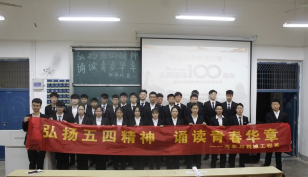 5月23日晚汽车与机械工程系团总支组织开展“弘扬五四精神,诵读青春华章”朗诵比赛。同学们以饱满的热情、激昂得诵读了《以青春的民义宣誓》,《五月的辉煌》,《祖国啊,我亲爱的祖国》《少年中国说》等篇章,把对党和祖国的感情,及青年学子蓬勃的朝气表达得淋漓尽致。比赛最后,组织大家重温入团誓词,让大家时刻牢记作为一名合格共青团员的使命。
