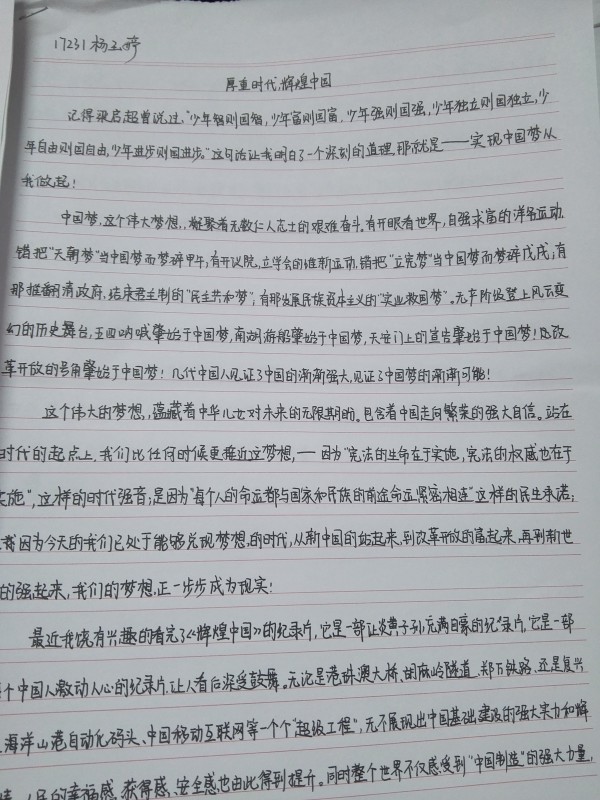 此次征文比赛中,学生们结合自身经历和人生规划,讲述自己的“中国梦”,畅想国家发展的愿景、新中国的新变化以及个人对美好生活的追求,大家尽情畅谈了自己对实现中华民族伟大复兴的看法,字里行间无不表现了对生活、对祖国的热爱。