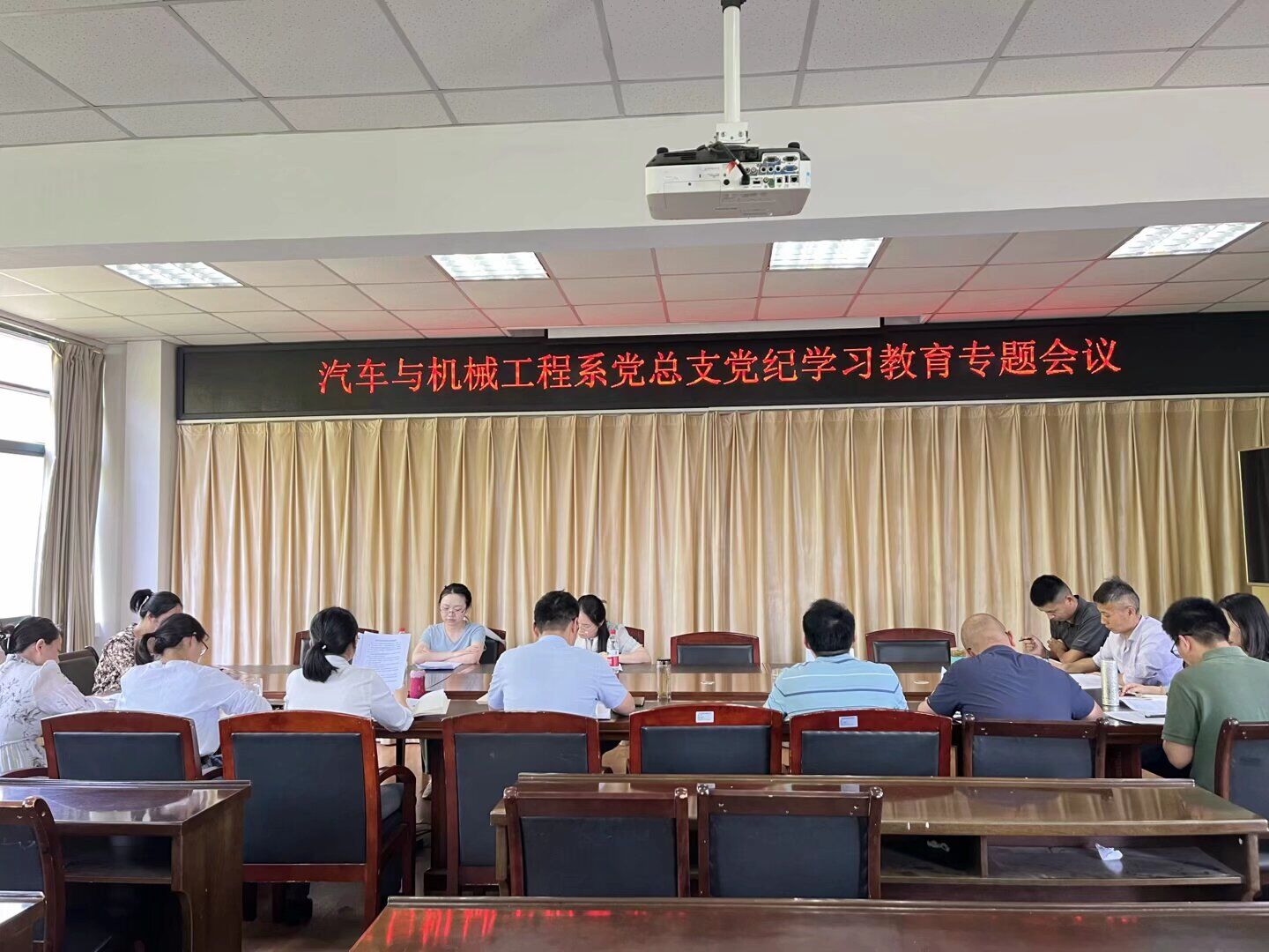 5月17日下午,汽机系党总支召开党纪学习教育专题学习研讨会,系领导班子、副科级以上干部和各支部书记参加会议,学院党纪学习教育专班工作人员列席旁听指导,会议由系党总支书记沈劲松主持。