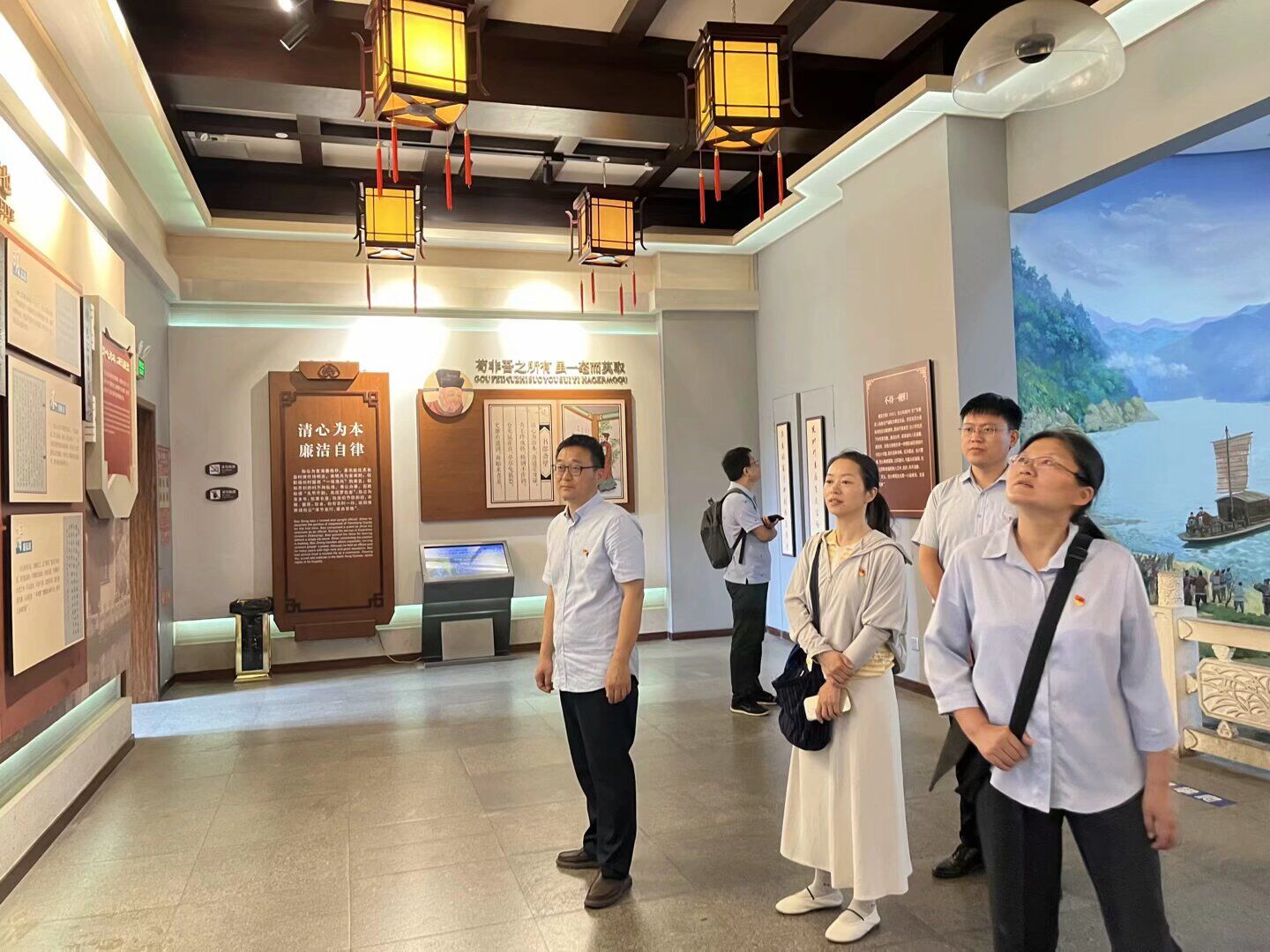 在庄严肃穆的清风阁,党员们先后参观了清风阁中“孝亲厅、勤业厅、清心厅、正直厅、官德厅、清风厅”等多个展厅,回顾了中国北宋政治家包拯“忠、孝、清、廉”的一生,充分领略了包拯侍亲孝、执政勤、修身清、为官正的精神品质。同时还学习了焦裕禄、杨善洲、沈浩、黄文秀、李夏等时代楷模务实为民、清正廉洁的先进事迹。