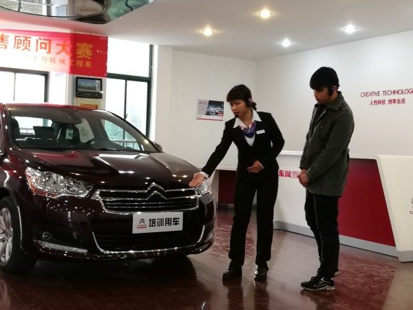 比赛初试为面试,最终选拔13名学生进入决赛。之后由指导老师和去年省赛的两名获奖学生对本次参赛选手进行了为期一个月的培训。决赛为新车模拟销售流程:由评委老师给出一个销售场景,选手进行客户接待。评委通过选手在模拟售车中的表现,对其在客户接待、需求分析、产品推介、报价成交、异议处理、礼仪规范等方面综合评分。比赛中,选手们对车型、车身、动力、性能等专业介绍,展现了扎实的专业知识功底,同时在满足不同客户需求、协调客户关系等方面采取的灵活接待方式,较好地展现了系部学生的专业素养。