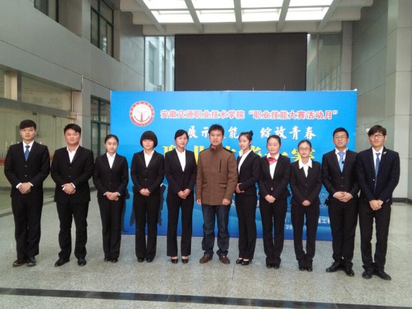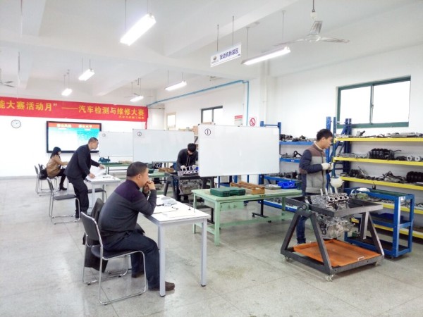 继汽车营销技能大赛后, 11月29日下午,我系职业技能大赛活动再度升温,汽车售后服务以及汽车检测与维修技能大赛在南区实训中心展开。广汽丰田合肥伟世行包河店总经理孟军、安徽伟业现代汽车销售服务有限公司经理张庆伟、安徽汇英行汽车销售服务有限公司经理唐振军、安徽汽贸中华汽车销售有限公司经理赵永乐及系相关专业老师参加并担任评委。