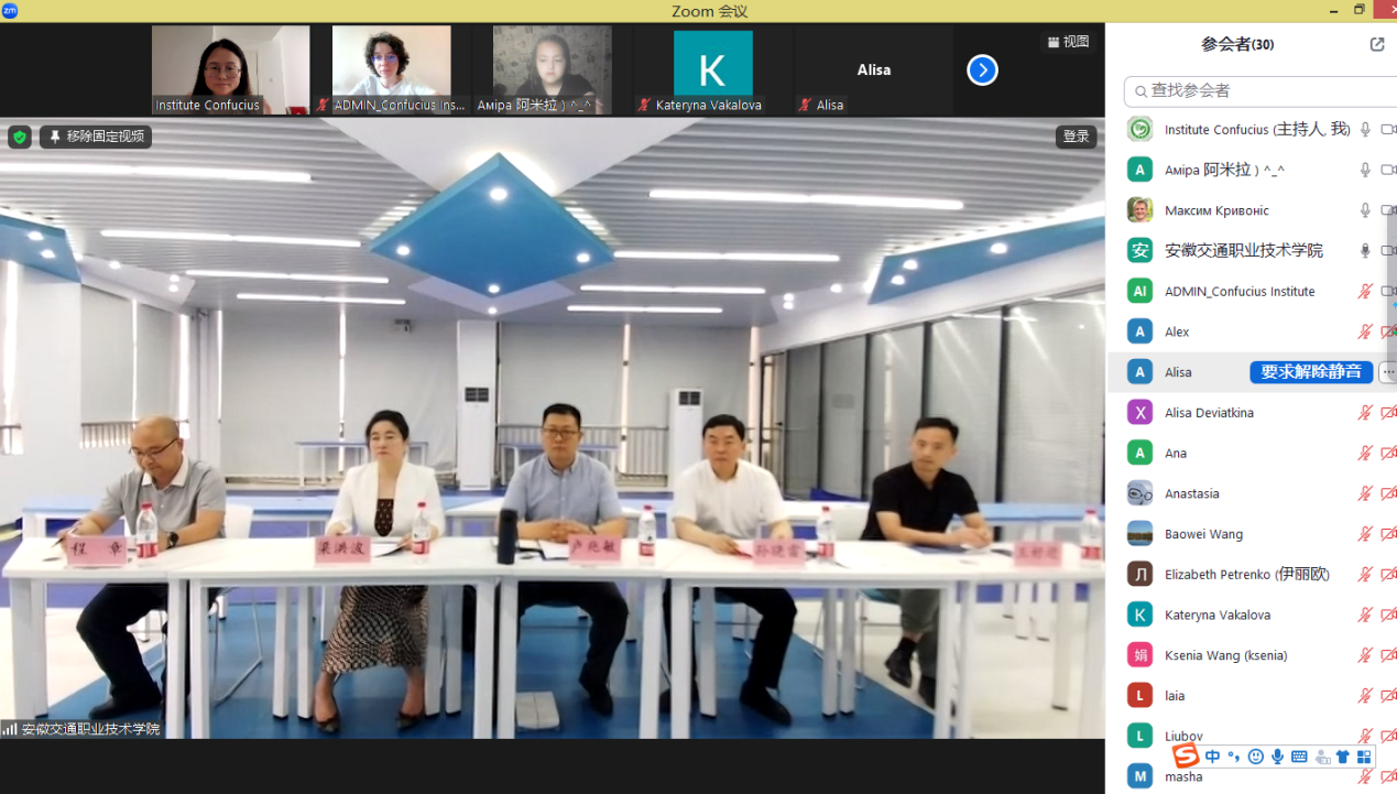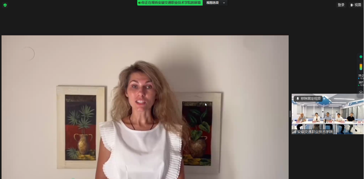 乌克兰哈尔科夫国立卡拉津大学孔子学院外方院长达尼亚远程发表致辞,充分肯定了本次培训的重要意义,感谢中方的精心组织,期待更深入的交流与合作。卢兆敏介绍了中国新能源汽车发展安徽贡献,希望参加培训的师生认真聆听本次培训,更多了解中国新能源汽车的发展。程章就发展新能源汽车背景与意义、主流新能源汽车结构与特点、中国新能源汽车发展之路及安徽新能源汽车品牌四个部分进行远程培训。