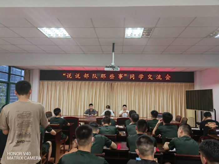 交流会向同学们介绍了参军入伍的福利待遇,以及军旅生涯中的发展机会。几位退伍学生分别讲述了自己当年“在部队的那些事”,汪莉则从军属的角度为大家讲述了她眼中的部队生活。参会同学们就在部队如何发展、日常训练科目、手机使用、外出休假和生活等关心的问题提出了问题,老兵们对其进行了耐心细致的解答。参会师生畅所欲言,气氛轻松活泼。