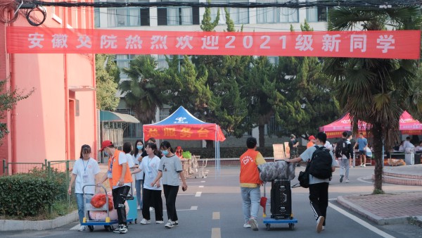 校园外,火车站、汽车站、高铁南站分别设立了接待点,来帮助新生及随行人员并指引他们到校。校园内,彩旗招展,横幅飘飘,传达着师生们对前来报到新生的亲切问好。