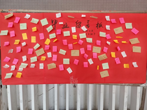 贴心服务,营造温情氛围。6月26日-28日教学楼门口设立了毕业纪念主题板,毕业生通过留言寄托了对大学三年的美好回忆和对母校的深深祝福。由大一、大二部分学生组成的“小红帽”志愿服务队,帮助毕业生搬运行李,以实际行动送别师兄师姐,给毕业生离校提供暖心、贴心、细心的服务。
