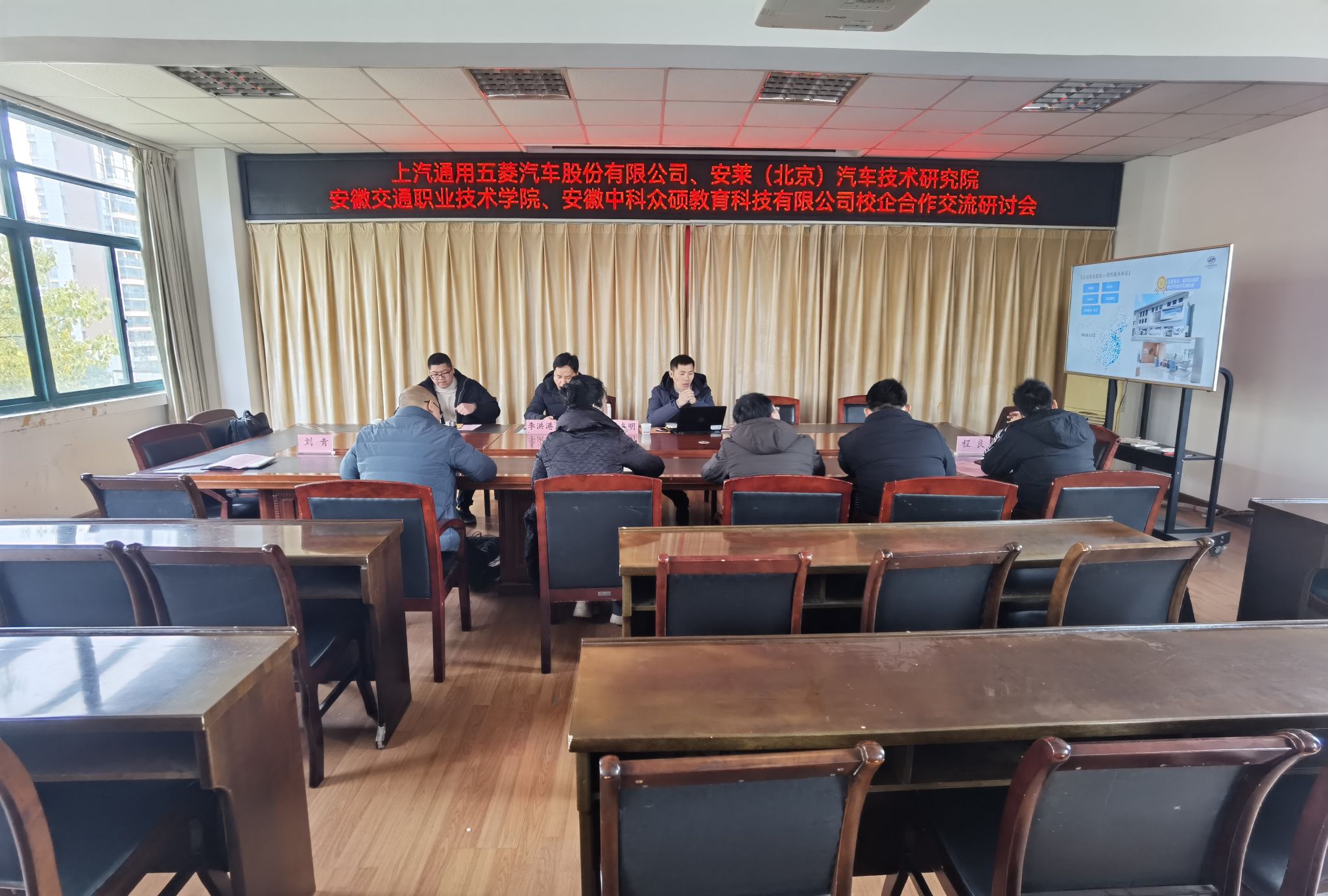 3月1日上午,上汽通用五菱汽车股份有限公司校企合作负责人叶志明,安莱(北京)汽车技术研究院总监李洪港、项目经理张硕一行三人来我系洽谈校企合作,院党委委员,汽机系主任梁洪波,系副主任张峰、程章和相关专业教师,安徽中科众硕教育科技有限公司共同参加会议。