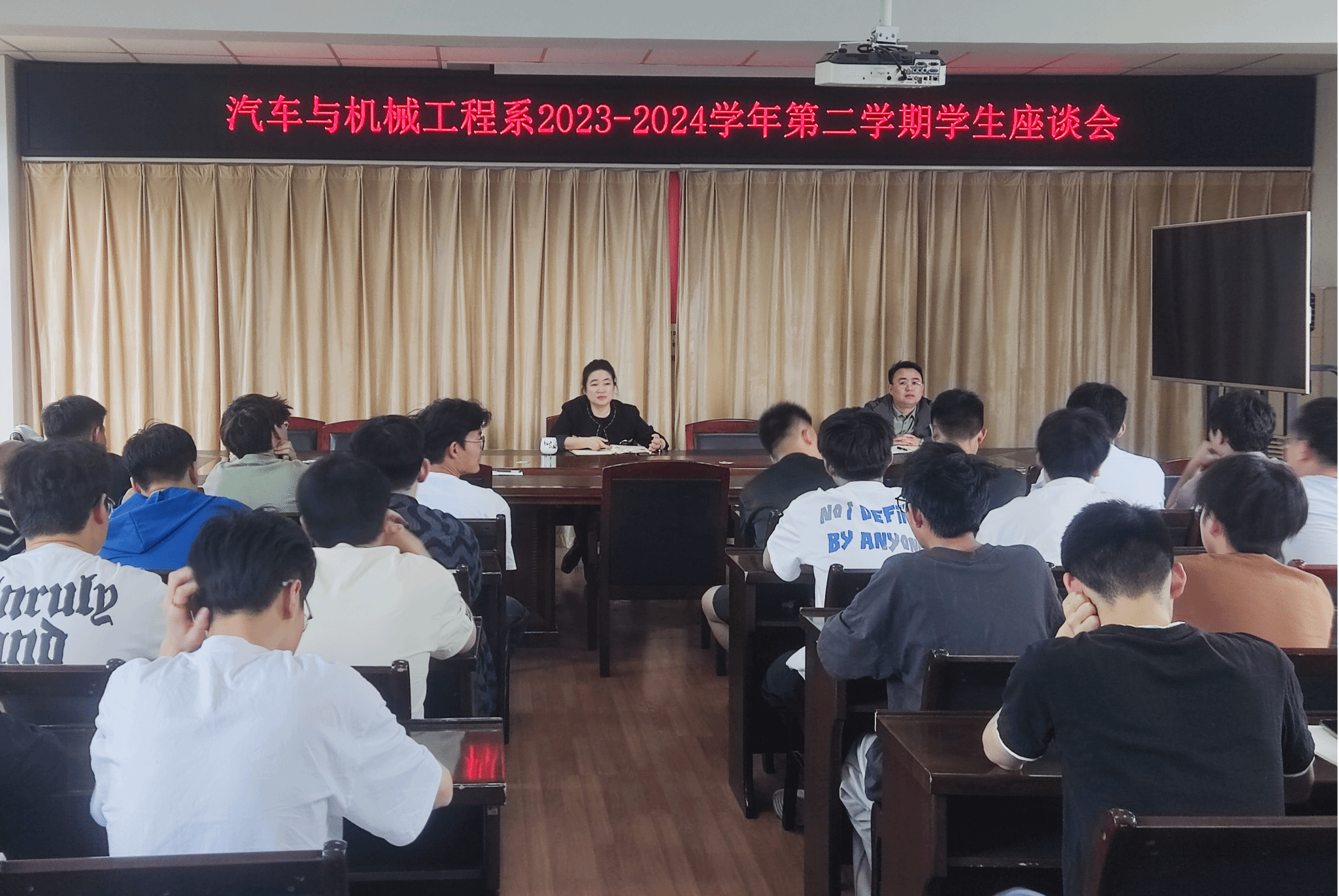 为进一步加强院系领导深入一线联系学生工作,关心了解学生思想动态和学习生活状况,收集学生对学校教育、管理、服务等方面的意见和建议,扎实推进学生思想政治教育工作实效,构建和谐校园。5月9日,汽车与机械工程系召开2023-2024学年第二学期学生座谈会,院党委委员、汽机系主任梁洪波,副主任张峰参加座谈会,22级和23级班级学生代表参会发言。