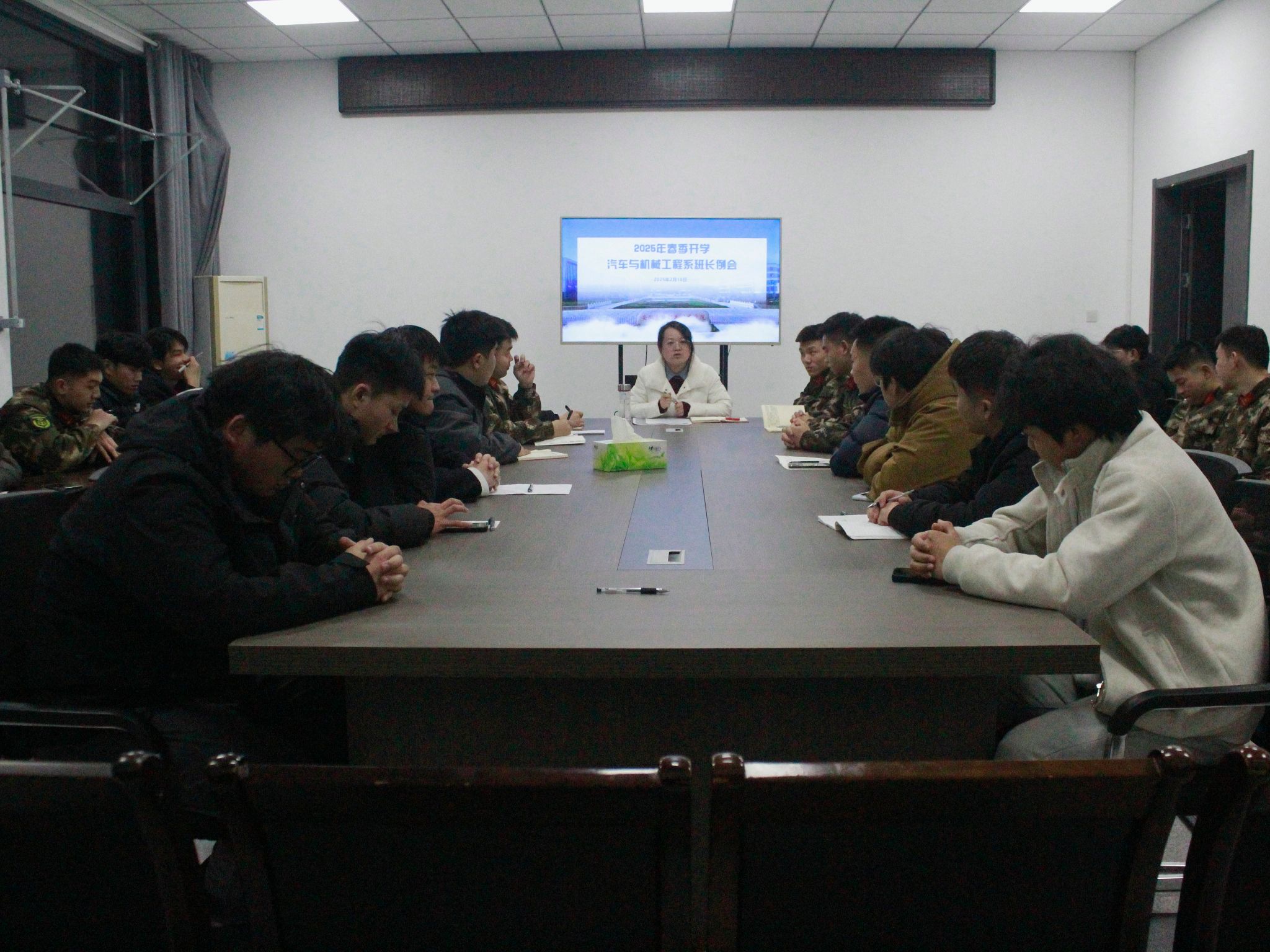 2月18日晚,汽机系在致远楼5楼会议室召开24-25学年第二学期班长例会。系主任辅导员罗玮玮、学生会主席及学生会各部门负责人出席会议,全体班级班长参会。会议围绕新学期班级管理、学风建设及校园安全等重点工作展开部署。