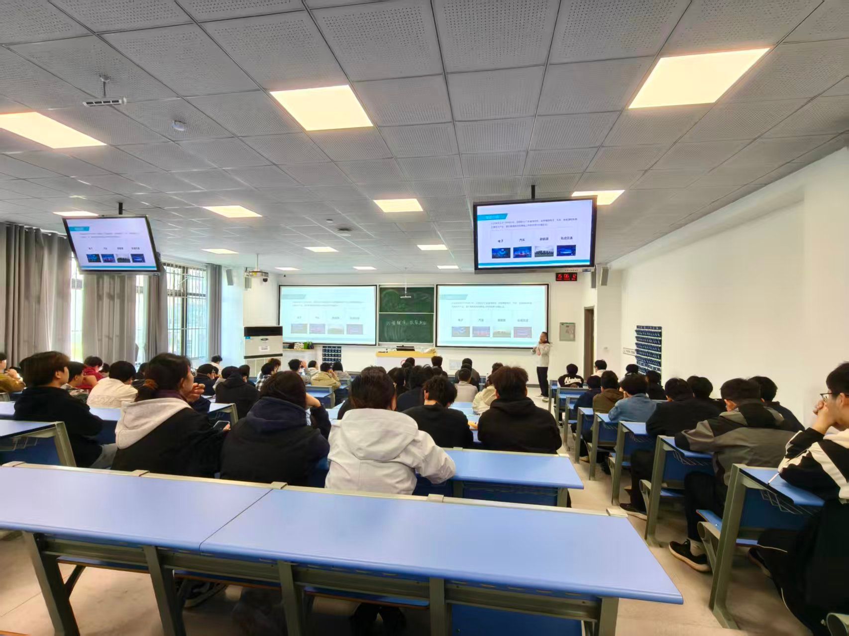 宣讲会上,事业部招聘负责人先以新能源产业发展趋势切入,介绍了第十五事业部在核心零部件研发、智能制造等领域的业务布局;随后重点解读了校招岗位方向、人才培养体系,尤其针对低年级学生关心的 “提前实习通道”“专业能力储备建议” 等内容做了详细说明。