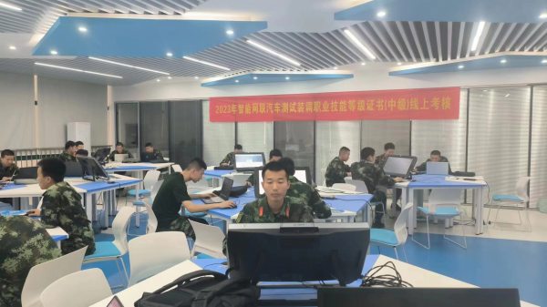 为贯彻落实《国家职业教育改革实施方案》、教育部等四部门印发《关于在院校实施“学历证书+若干职业技能等级证书制度试点方案》文件精神,高效有序推进智能网联汽车测试装调职业技能等级证书实施工作。5月23至26日,在汽车与机械工程系实训中心三楼开展智能网联汽车测试装调职业技能等级证书(中级)考核,汽车检测与维修技术专业(定向士官)50名学生参加考核。