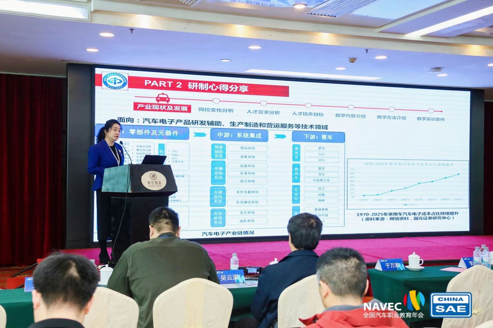 3月28至30日,第十八届全国汽车职业教育年会暨全国汽车职业教育教学指导委员会成立大会在广西南宁召开。院党委委员、汽机系主任梁洪波作为新版高职汽车电子技术专业《职业教育教专业简介》和《职业教育教学标准》研制小组组长、全国汽车行指委委员、智能网联专委会副秘书长出席大会,并作汽车电子技术专业简介内涵解读及专业教学标准修(制)定工作思路分享。