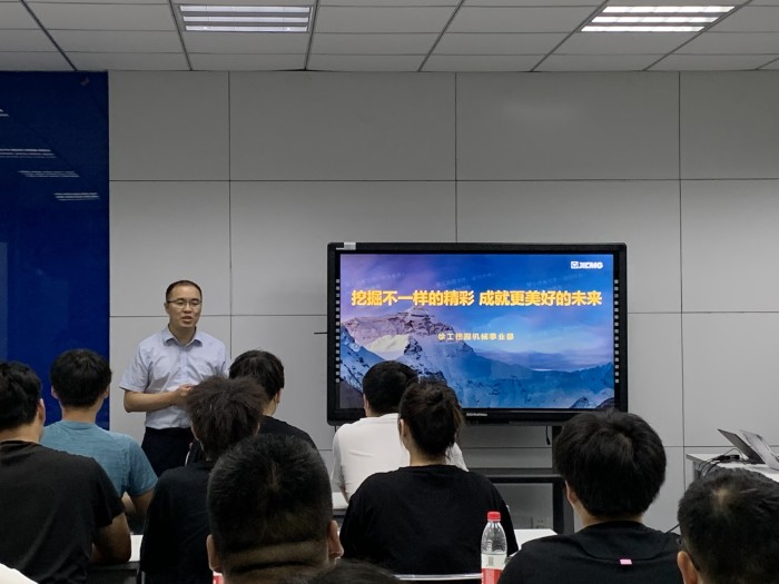 徐工挖机同盟军商学院院长助理张松松介绍了徐工挖机事业部及徐工同盟军理念。徐工挖机通过凝聚同盟力量,与徐工同盟军一起培养认可徐工、技能扎实的营销服务一体化人才。