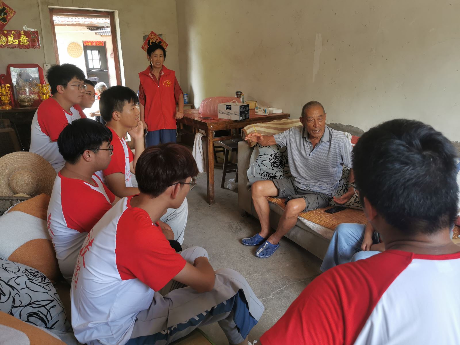 实践团还充分利用空余时间主动走近村干部和村民,围绕农民生活、征地拆迁、环境整治、村风村貌等问题进行实地调研,充分了解农村居民生活现状和乡村振兴的进程。在村委领导的带领下,实践团寻访慰问老党员,聆听农村发展故事,参观村民葡萄园种植基地,了解农民创业情况,在调研走访中听民声,汇民意,并主动和村干部一起给农户清理门前屋后的卫生,在身体力行中暖民心。
