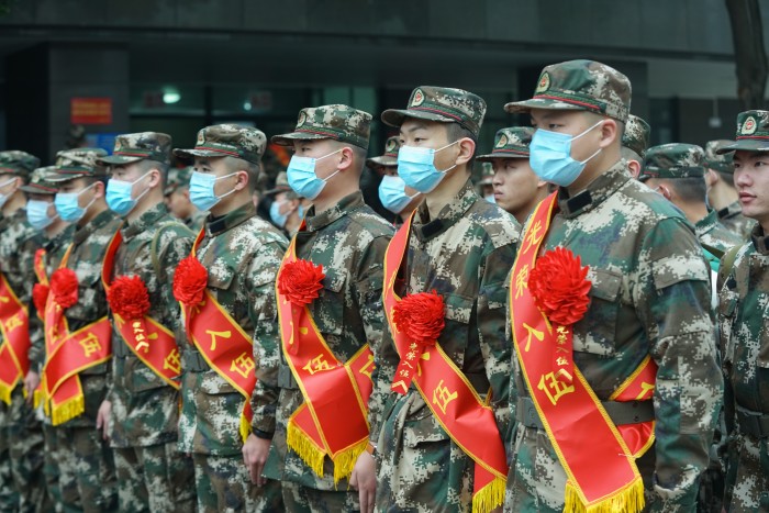 1月7日上午,汽车与机械工程系2019级定向培养士官生佩戴上光荣的红花,整装待发,满载师长和学子的祝福,奔赴训练基地淬火锻炼。