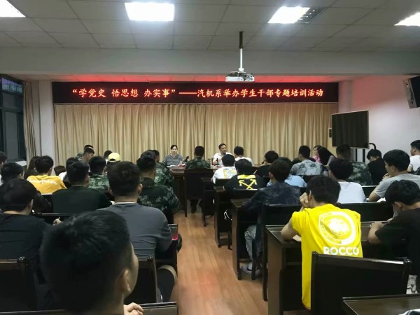 为提高学生干部综合素质,增强学生干部服务能力和责任意识,进一步发挥学生干部的骨干带头作用,切实开展好“为师生办实事”活动,5月13日晚,汽机系举办“学党史 悟思想 办实事”学生干部专题培训活动。汽机系18级、19级各班学生干部代表和系学生会部分学生干部参加了本次培训活动。汽机系党总支书记李家林、党总支委员、学生党支部书记兼主任辅导员赵婧参加了本次活动。