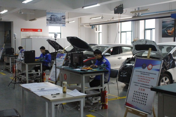 本次考核模块为汽车运用与维修1-3-2汽车电子电气与空调舒适系统技术(中级)模块,包含“电子控制电路检测与维修”、“起动与充电系统检测维修”、“电器与控制部件检测维修”和“空调与舒适系统检测维修”四个项目,每个项目设工位4个,共计16考核工位,考场充分借助米兰丰田T-TEP校企合作中心和大众SCEP校企合作中心优质资源,利用整车16台、举升机、诊断仪、示波器及各种检测专用设备数台,考题设置紧贴生产性岗位能力需求,模拟真实工作情景,注重对学生在整车防护、故障诊断、故障分析、故障排除及工单报告撰写的综合维修能力培养和考核。
