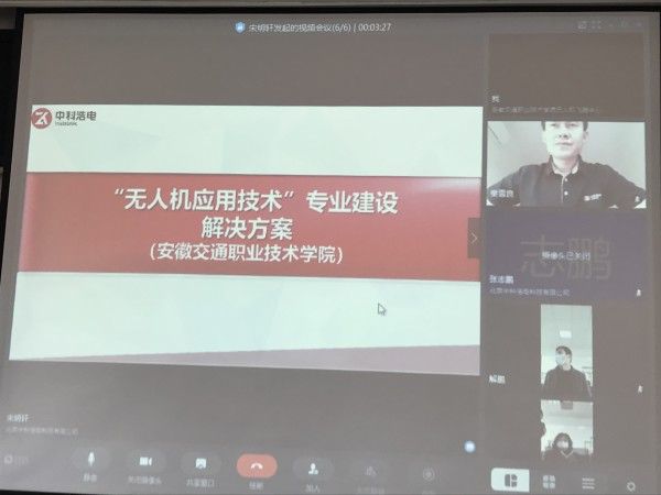 3月2日上午,正直新冠肺炎疫情期间,我系与北京中科浩电科技有限公司,以远程会议的方式召开了无人机应用技术专业建设方案探讨。北京中科浩电科技有限公司安徽区域经理宋明轩主持会议,中科浩电副总经理秦雪良、职教方案部经理张志鹏列席会议,汽车与机械工程系主任梁洪波主任、无人机专业带头人张翼、骨干教师解鹏代表米兰参与此会。
