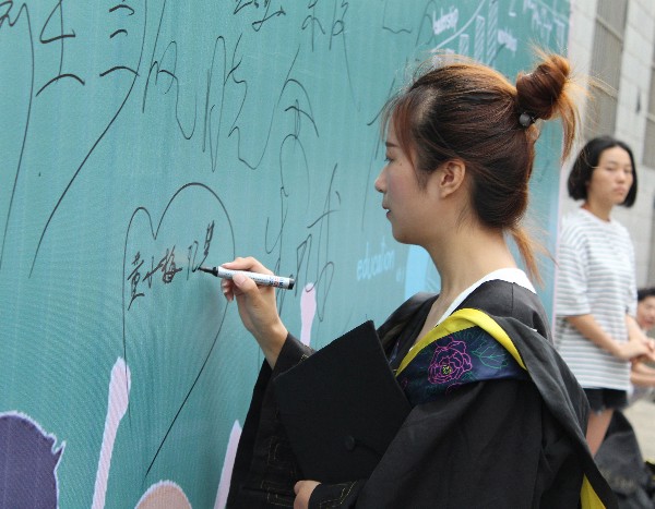 教学楼上、学生宿舍的的路边,早已挂起“情系交院 志在四方”“祝2018届毕业生昂首展翅,飞向人生另一个开阔天空”等欢送毕业生的横幅。6月27日-29日在教学楼门口设立了毕业纪念主题板,为每一位学生提供了留言纸,毕业生通过留言寄托了对大学三年的美好回忆和对母校的深深祝福。由大一、大二部分学生组成的“小红帽”志愿服务队,帮助毕业生搬运行李,给毕业生离校提供暖心、贴心、细心的服务。