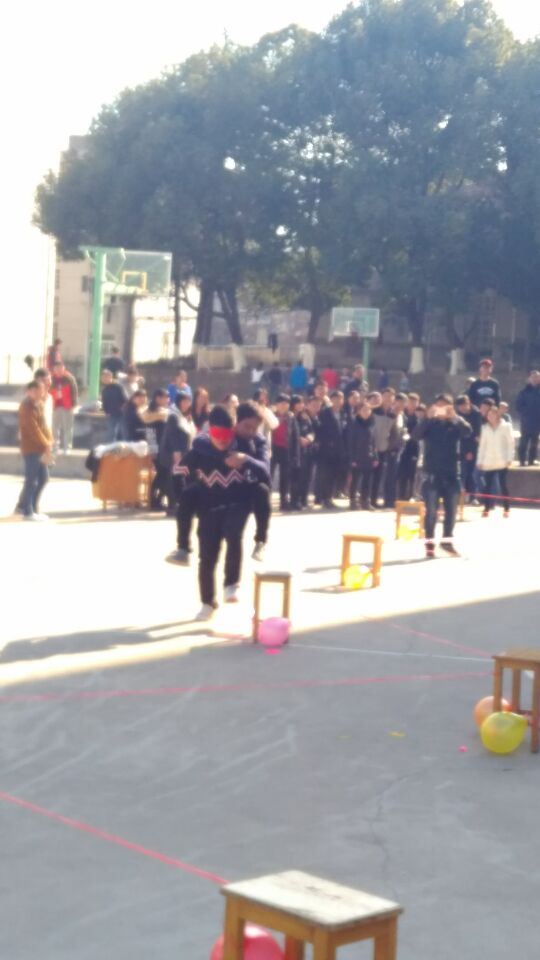 本次活动项目趣味性与挑战性并存,涵盖“联机篮球、捆绑过关、瞎子和瘸子”三个环节,主要考验同学们的协调合作能力。联机篮球环节,每轮四支队伍,两支队伍合作对抗另外两支队伍,两个人的手脚绑在一起打篮球;捆绑过关环节,一队三个人手脚绑在一起,一人倒水,一人拿水给另一人喝,两人剥糖果给第三人吃;瞎子和瘸子环节,一人蒙着眼睛背着另外一人,由被背的人指挥踩气球。尽管天气寒冷,但同学们热情高涨,参赛队员一个个精神抖擞,远离了“低头族”“手机党”“数码控”的消极形象,展示了真正属于年轻人的青春活力,现场十分热闹。