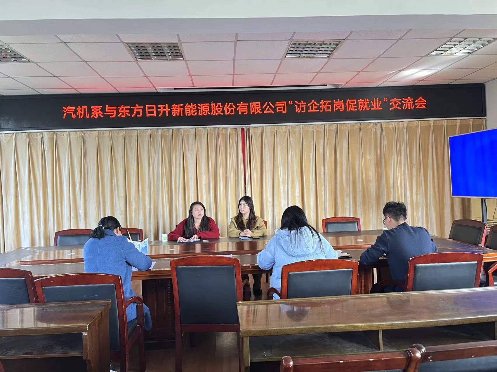 为进一步促进校企合作再深化,加大访企拓岗力度,努力为毕业生提供优质就业岗位,全力促进毕业生高质量就业,3月21日下午,汽车与机械工程系与东方日升新能源股份有限公司开展交流会。汽车与机械工程系副书记汪莉,主任辅导员罗玮玮,以及负责就业的老师,东方日升新能源股份有限公司市场部负责人参加了本次会议。