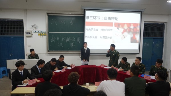 4月16日晚,汽车与机械工程系2023年“新月杯”辩论赛决赛在西阶101教室举行。经过一个多月的激烈角逐,22新能源1班和22机械2班两支代表队一路过关斩将,进入此次的冠亚军争夺决赛。