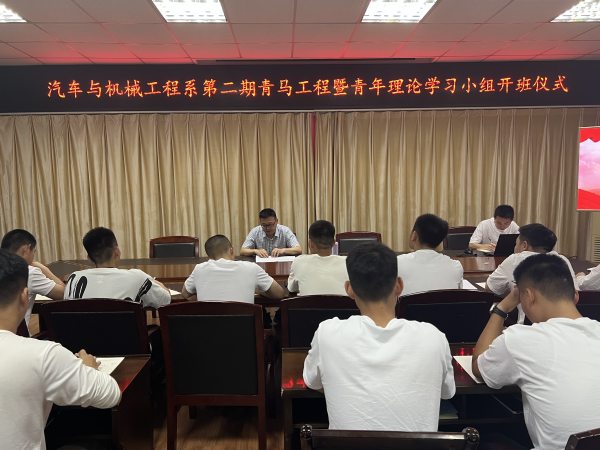 为深入开展学习贯彻习近平新时代中国特色社会主义思想主题教育,进一步加强青年大学生的思想政治引领,扎实做好青年马克思主义者的培养工作,汽车与机械工程系于5月30日晚举行第二期“青马工程”暨青年理论学习小组开班仪式。汽机系党总支书记沈劲松、主任辅导员罗玮玮、第二期“青马工程”和青年理论学习小组学员参会,开班仪式由系团总支书记钟飞飞主持。