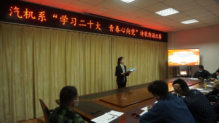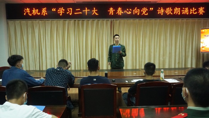 金秋十月,秋风送爽。为了迎接党的二十大胜利召开,弘扬主旋律,讴歌新时代,营造朝气蓬勃、积极向上的校园文化氛围,汽车与机械工程系于10月16日晚在南教三楼会议室开展了“学习二十大 青春心向党”诗歌朗诵比赛。大一大二班级三十六名同学参加了本次比赛。