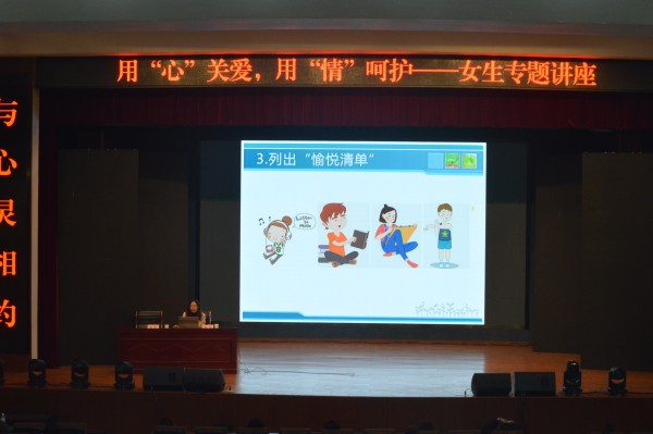 郑敏老师的讲座围绕女生心理特征、恋爱和人际交往等方面的问题展开,结合事例对女大学生成长过程中的自我发展、亲密关系建立等给出了中肯的建议,鼓励女生努力做一个美丽的、快乐的、自强的女生。